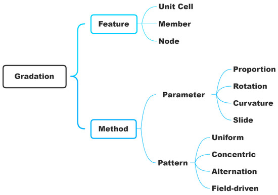 | Gradation | Unit Cell | Proportion–Field-driven | Arbitrary (bone-like) | Higher stiffness at lower mass [20] |
