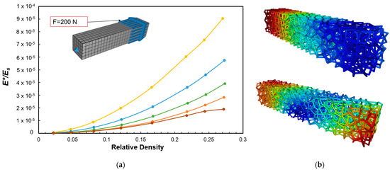 - Roberts, A.P.; Garboczi, E.J. Elastic properties of model random three-dimensional open-cell solids. J. Mech. Phys. Solids 2002, 50, 33–55. [Google Scholar] [CrossRef]