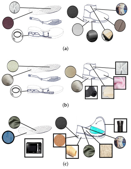 Here, we establish the criteria associated with their specifications and respective units. The approach used relies on the work of Franke [24]; when possible, the specifications proposed fall into the categories listed in his work. We also consider criteria identified by specific standards used in the home footwear industry and materials’ quality control. Finally, discrete (which include binary) criteria are also used to represent qualitative alternatives when quantitative metrics are not available. In the last case, an equivalence between the alternatives and indicator variables is established. The metrics associated with the criteria to satisfy and the units to express them are listed in Section 3.2 but they were decided on this phase of the procedure.