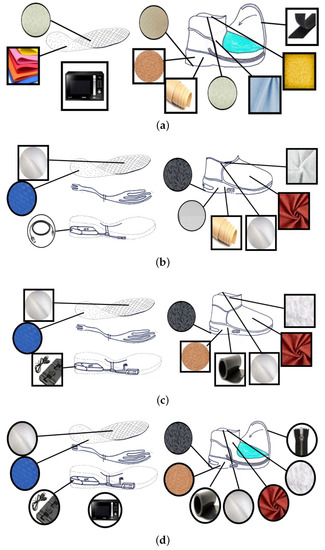 Graphical representation of concepts: (a) Tough Slipper; (b) Teddy Slipper; (c) Ecofriendly Slipper; (d) Techno Slipper.