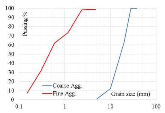 Grain size distribution of fine and coarse aggregates.