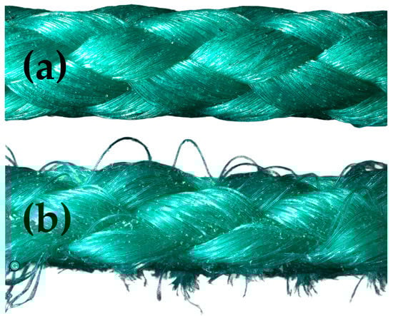 As a result of the tensioning mechanism’s design (shown in Figure 11), the most visible damage occurred at several locations along the traction wire loop. Friction between the traction wire and the tensioning metal eye created burrs and chipping of the wire particles. Figure 12 depicts the condition of the tension wires before and after the long-term test.