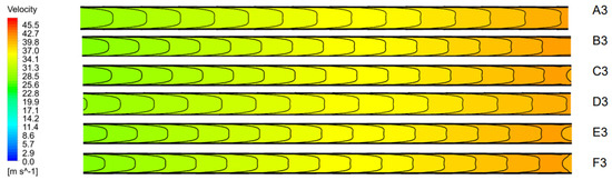 3.2. Results after Applying the Different Velocity Profiles