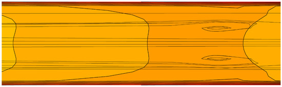 Talluri conducted a parametric analysis to evaluate the factor “a” that produces the model profiles that best fit the real profiles. The best approach is a radius-dependent factor “a”, so that it can be different for undeveloped and developed flows. Talluri’s suggestion is that factor “a” is equal to 4 for undeveloped flow near the inlet after comparison with the CFD results for the working fluids R404a, R134a, R245fa and R1233zd(E) [28]. For fully developed flow, “a” is equal to 8, as suggested by [31] after validation with the CFD results. In the present work, the factor “a” is equal to 4 if the distance covered by the fluid is less than the entry length for developed flow and equal to 7 otherwise.