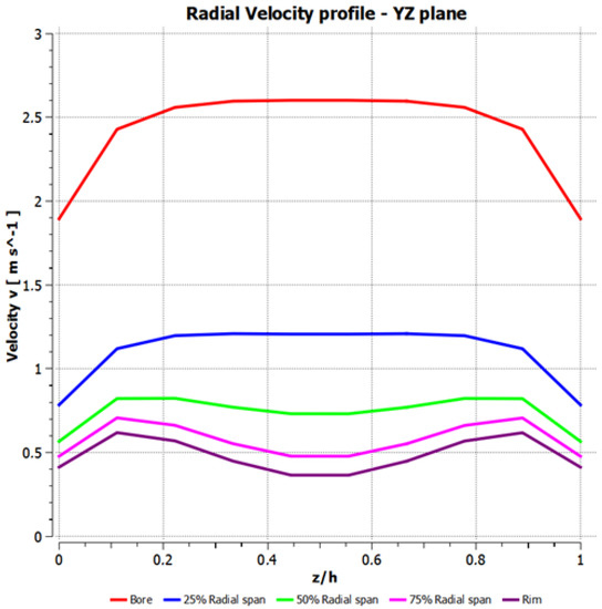 The solutions to the derived Navier–Stokes equations with the volute loss model and velocity profiles are discussed in this section. Initially, the solutions are generated with Talluri’s velocity profile in order to explore the validity of the volute loss modelling.