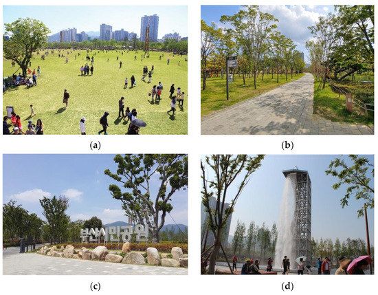 - Ministry of Land, Infrastructure and Transport. Urban Parks and Green Areas Act; Ministry of Land, Infrastructure and Transport: Sejong City, Republic of Korea, 2018.