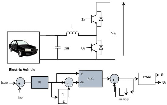 A PI-Fuzzy logic controller controls the EV charging and discharging using a reference current that is determined by the EMS based on the operating mode of EV as shown by Figure 4. Similarly, a bidirectional buck/boost converter based a PI-Fuzzy logic controller is utilized to control charging and discharging of the battery energy storage, in the same way.