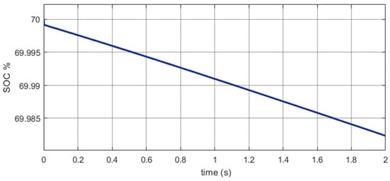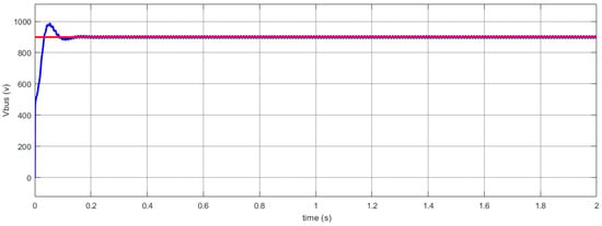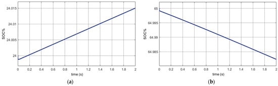In this case the energy produced through the PV is sufficient to meet the requirements of the household loads, to charge the EV and the storage battery, and the rest of the power is injected into the electricity grid. Figure 8a shows EV charging and Figure 8b shows battery charging, and the DC bus voltage is shown in Figure 9.