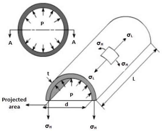 In general, the yz-shear stress part is aligned with the longitudinal axis of the pressure vessel, the y-stress part is aligned with the radial direction, and the z-normal stress component is aligned with the circumferential direction.