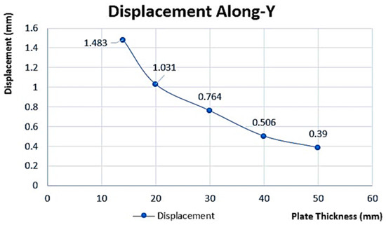 Figure 13, and displacement along the y-axis versus plate thicknesses in