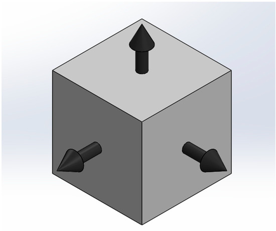 Additionally, SolidWorks helps to define the principal stresses [24], where portions of a structure can be broken down into smaller cubes, each experiencing normal and shear stresses [24]. To calculate the maximum normal stresses these cubes experience, SolidWorks rotates these cubes so that the shear stresses are negligible [24]. At this point, the only stresses that remain on the rotated portion are the normal stresses [24]. In general, each face of the cube has a corresponding face on the opposite end of the cube with the same stress [24]. As a result, there are a total of three different stresses acting on the faces of this rotated cube, the largest called the first principal stress, the second-largest stress called the second principal stress, and the smallest called the third principal stress [24], as shown in the visualization in Figure 2.