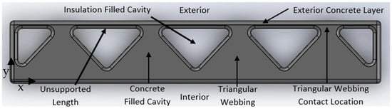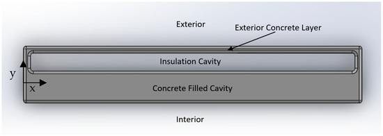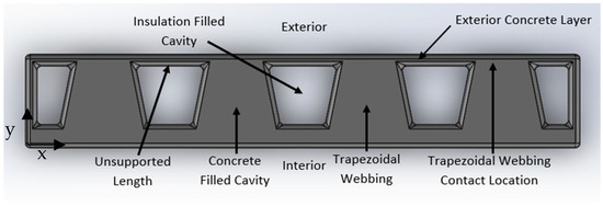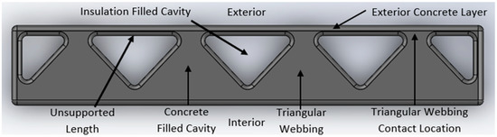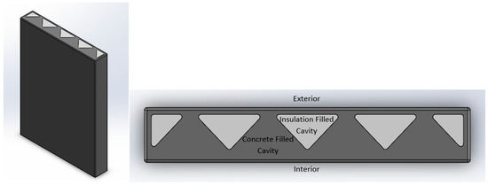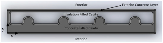Symmetric Two-Cavity Wall Printed Formwork Filled with Concrete, Labeled. Modeled in reference to [26].
