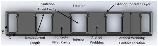 Internal Large-Arched Multicavity Wall Printed Formwork Model with Concrete Labeled. Modeled in reference to [22,30].