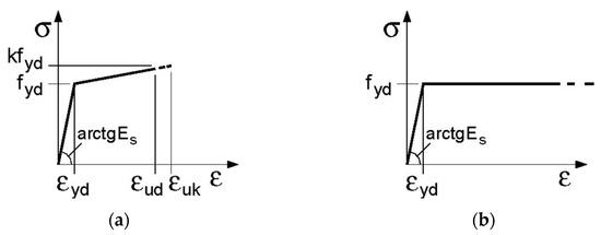 NTC2018 [18] steel constitutive laws: bilinear with work-hardening (a) and elastic–perfectly plastic indefinite (b).
