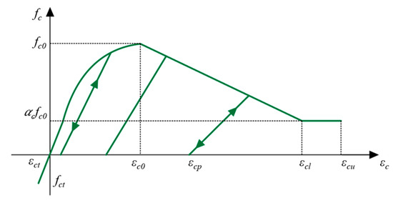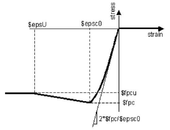 A very simple model to describe the compressive behavior of concrete is the one presented by Kent and Park, modified by Scott et al. (Kent and Park, 1971; Scott et al., 1982) [21] (Figure 6).