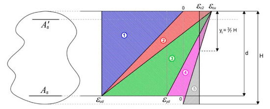 As the code works [29] by section-failure fields, in the case of pure bending, the cross-section is classified depending on the amount of reinforcement, according to the fields in Figure 10, where: