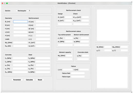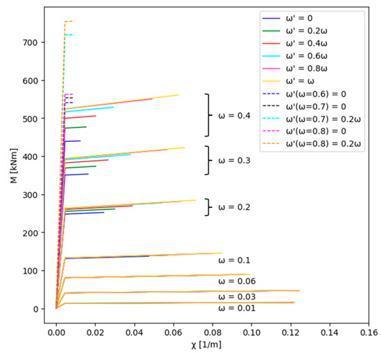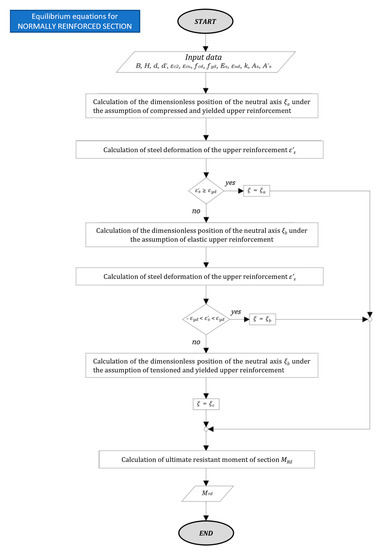 The definition of the current field is achieved by calculation of the mechanical percentage of tensioned and compressed reinforcement in Equations (2) and (3).