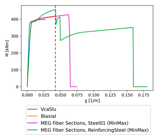 The possibility of making changes to the code allows the software to be more adaptable and to consider the non-linearity of materials by choosing the parameters that govern the models of concrete and steel. In particular, steel non-linearity is taken into account by the hardening ratio k, in Equation (1).
