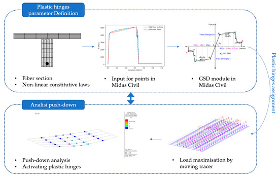 The sectional and global concentrated plasticity analyses proposed in this paper could be extended to numerical models of bridges using more complex diffuse plasticity modeling techniques to evaluate the actual behavior of the structure. By neglecting aspects concerning the calibration of the hinge, which require the experience of the operator, more accurate results can be obtained through the distributed plasticity method at the expense of a higher computational burden and difficulty. Diffuse plasticity can also be implemented in the push-down analysis in order to observe where plastic hinges form.