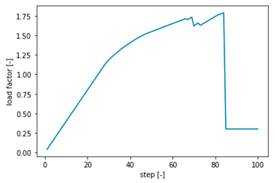 Case study 2: Global collapse of the prestressed concrete deck at step 85.