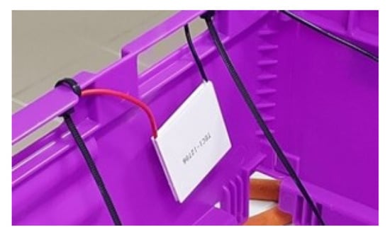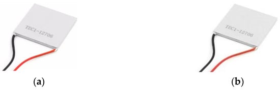 The Peltier cells, as shown in Figure 7, are used, as described in Section 1.2, to lower and/or maintain the temperature of the food being tested. In this test, two types of Peltier cells were used [,], the characteristics of which are shown in Table 7.