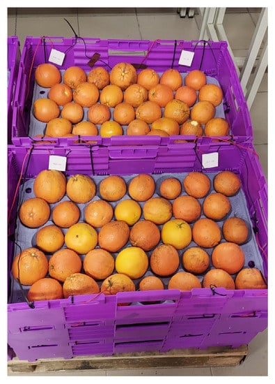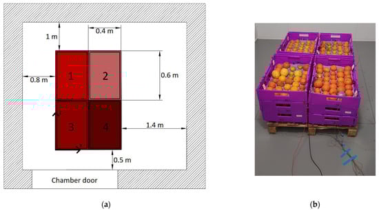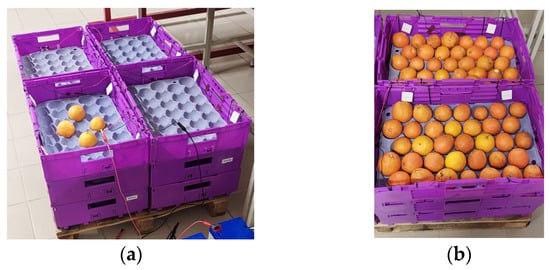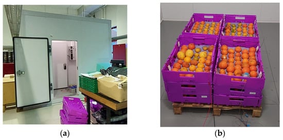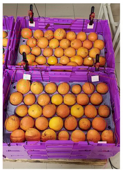 To carry out the tests, it is necessary to take into account the temperatures of the external environment, the room ambient temperature, and the temperature inside a refrigerated vehicle, whose temperature, according to Table 8 of CENEX for oranges, mandarins, and grapefruits (foodstuffs used in the tests), is within the parameters for refrigerated foodstuffs at high temperatures, 8 °C [].
