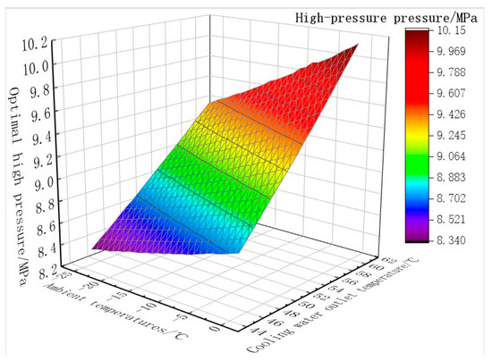 Variation in optimal high pressure with ambient temperature and cooling water outlet temperature.