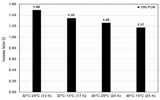 - Incorporating the PCM into the envelope may successfully minimise the interior temperature variation. By carefully choosing the PCMs in accordance with the local climatic conditions, a significant energy-saving rate between 4.8 and 34.8% can be obtained. As shown in Figure 6, the effect of a number of parameters on the duration of interior thermal comfort is quite similar to that of the use of power.