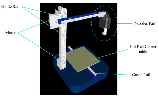 - Control and detection section, including the stepper motor, temperature sensor, guide rail, etc. These parts can provide working data during operation and adjust the extrusion speed of the nozzle by adjusting its speed, making it a controllable part for the operator during use. Different nondestructive testing and monitoring can be considered for the specific design and functionality.