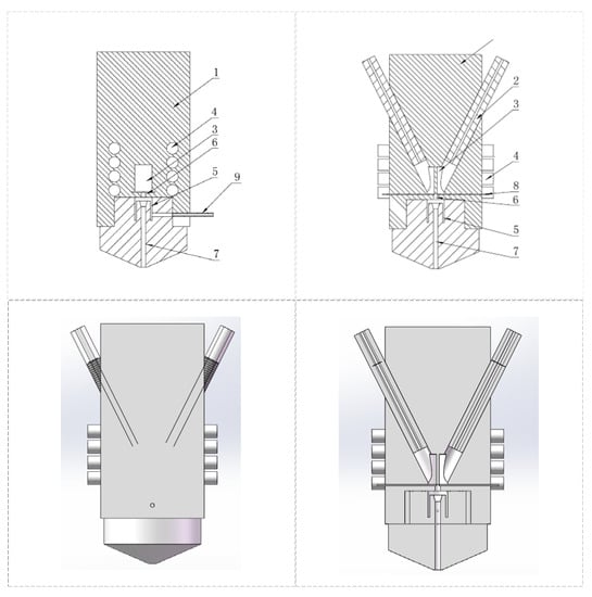 - Li, C.; Yang, J.; Li, Y.; Wang, L. Structure design and process parameter optimization of active mixing nozzle based on PDMS/SiC functional gradient composite. China Plast. 2023, 37, 1001–9278. [Google Scholar]