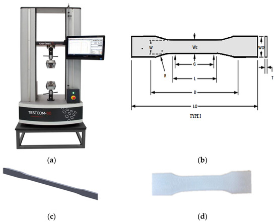 By utilizing the dogbone geometry, this testing methodology ensures the highest probability of failure due to the ultimate tensile load. ASTM D638 type I is the most widely adopted standard for measuring the tensile properties of both reinforced and unreinforced polymers. It provides guidelines for sample dimensions, specimen preparation, testing conditions, and result calculations [32].