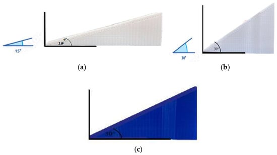 The mechanical properties of the PETG filament materials were compared with PLA in this study, and it was found that PETG exhibited greater strength [30]. The experimental results for the two different printing angles, 15° and 30°, were analyzed to understand their impact on the mechanical properties of PETG. Figure 5 illustrates the findings, showing improvements in the mechanical properties of the samples printed at a 30° angle.