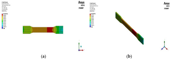 One of the reasons for the complexity in studying the mechanical properties of 3D-printed objects is the presence of complex microstructures. Due to the layer-by-layer nature of the additive manufacturing process, these objects often exhibit intrinsic anisotropic mechanical behavior. Anisotropy means that the mechanical properties can vary depending on the direction in which the object is tested. Additionally, numerous process factors, such as printing speed, temperature, and material composition, further influence the resulting mechanical properties. To overcome these challenges and gain insights into the structural performance of 3D-printed objects, computational modeling techniques are commonly employed [8]. In this regard, a finite element analysis (FEA) is used as a tool; it represents a powerful computational modeling approach used to simulate the mechanical behavior of complex structures, including those produced through additive manufacturing. This tool can be used in 3D-printing parameters, for which the raster angle is regarded as one of the 3D-printing parameters; it has been identified as a critical variable affecting the mechanical properties of printed objects [9,10,11]. The raster angle refers to the orientation of the printed layers with respect to the direction of printing. By changing the raster angle, the distribution of stresses and strains within the printed object can be altered, leading to variations in its mechanical behavior.