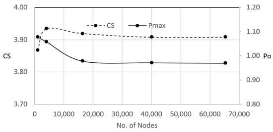 Figure 6 shows the effect of mesh density on the values of the dimensionless critical speed and the dimensionless maximum pressure. It can be seen that when the number of nodes is greater than 16,471, the difference is negligible in the critical speed as well as the maximum pressure values. However, the number of nodes adopted in this work is 65,341 to minimize any error related to the discretization of the governing equations.