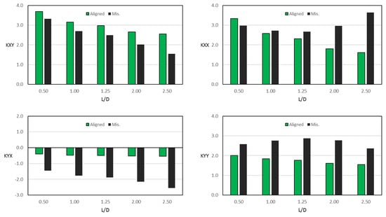 Effect of 3D misalignment for a wide range of Length/Diameter ratios on the four dimensionless stiffness coefficients; .