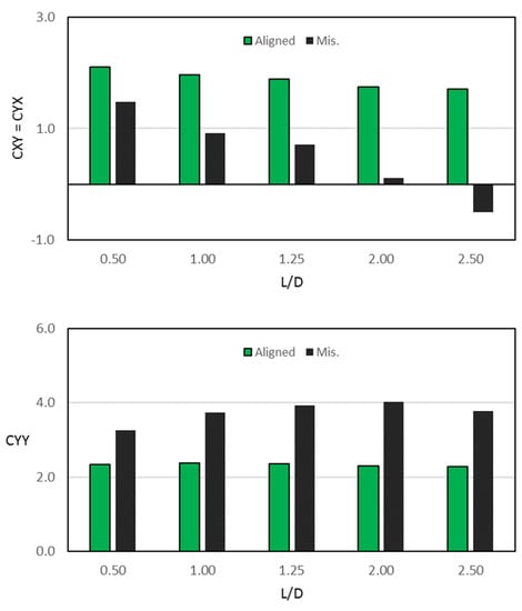 Effect of 3D misalignment for a wide range of Length/Diameter ratios on the four dimensionless damping coefficients; .