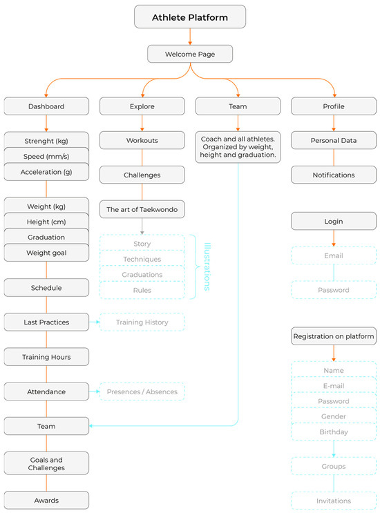 The study academy encompasses a set of athletes and coaches who are part of an elite group, where they have trained Olympic-level athletes, such as the first Portuguese athlete to win a Taekwondo fight in the Olympic Games [59]. It should also be noted that, in March 2022, the athletes from the academy of the University of Minho guaranteed a total of 11 medals at the National University Championships under the supervision of a coach—also a holder of numerous medals in this martial art [60]. Thus, the analysis and evaluation of athletes like Bragança and Maugi allowed the platform to reach a final stage with a low number of inconsistencies and a relevant optimization on the user experience and interface.
