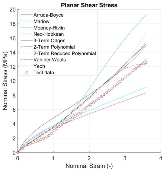 All hyperelastic models’ planar shear stress prediction.