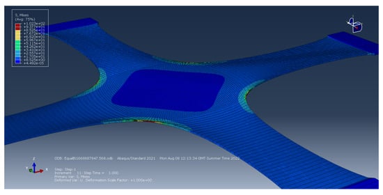 von Mises stress of deformed cruciform (Arruda–Boyce model).