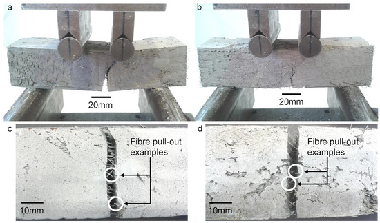 Fresh mixes were poured into 160 mm × 40 mm × 40 mm moulds in accordance with British Standard BS EN 1015-11:1999 [54] and mechanically vibrated. The density was calculated for each prism prior to testing. Flexural and compressive strength tests were carried out on the hydrated prisms using an Instron Universal 2630-120/305632 device to obtain an indication of 1-day and 28-day strength values. Ambient laboratory temperatures were 20 °C ± 2 °C and laboratory potable water temperature was 17.5 °C ± 1 °C. Four-point bending flexural tests were in accordance with British Standard BS EN 12390-5:2009 [55]. Compression tests were subsequently conducted in line with British Standard BS EN 1015-11:1999 [54].