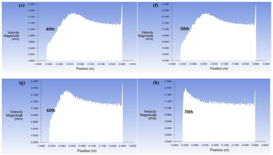 Outlet velocity plot: (a) 0th iteration, (b) 10th iteration, (c) 20th iteration, (d) 30th iteration, (e) 40th iteration, (f) 50th iteration, (g) 60th iteration, (h) 70th iteration, and (i) 80th iteration.