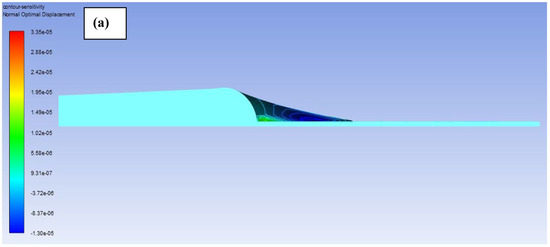 In order to quickly calculate better designs, gradient-based optimization algorithms take advantage of design sensitivity. The design variables, such as the ½ height of die cavity or inlet pressure variables in ϕ, and performance metrics of the system, such as f, , , and in Equation (1), are quantified by design sensitivities [4]. Similar to how the flow solution was assessed, equations were developed for the design sensitivities and evaluated them using the FEA. This method of analysis sidesteps the usual mistakes and inefficiencies of FDM.
