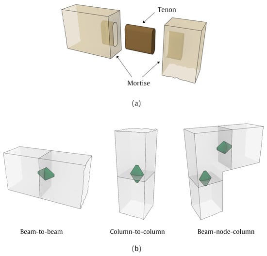 Dry and low-tolerance precast interface technology investigated at the Karlsruhe Institute of Technology [57]: (a) loose mortise and tenon joint in timber construction; (b) applications in concrete construction.