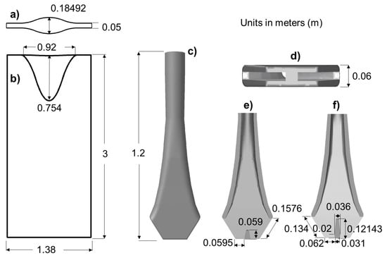 Optimizing the internal geometry eliminates the area below the nozzle’s tip where a vortex path originates, raising the dynamic distortion and forcing the jets []. In addition, the projections of the nozzle share their energy to create a balance between both, eliminating the external effect of ferrostatic pressure and oscillations.