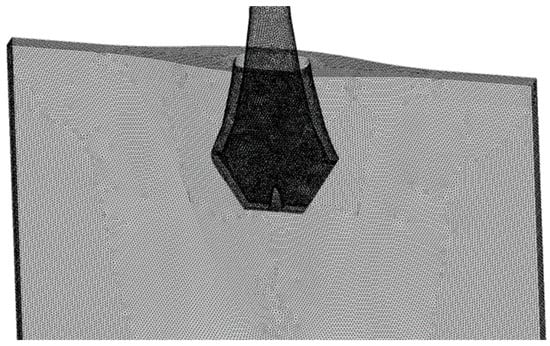 Figure 2 schematically shows the essential geometry parameters for the funnel thin-slab mold and the two SENs studied. Figure 2f shows that the SEN internal modification increases the port’s internal bifurcation tip height. The computational domain consisted of 1,573,692 unstructured cells (336,716 nodes), as shown in Figure 3.