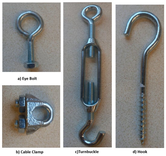 Hardware components used to build the cable attachments are shown in Figure 4.