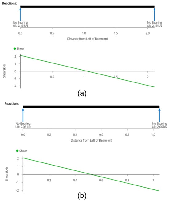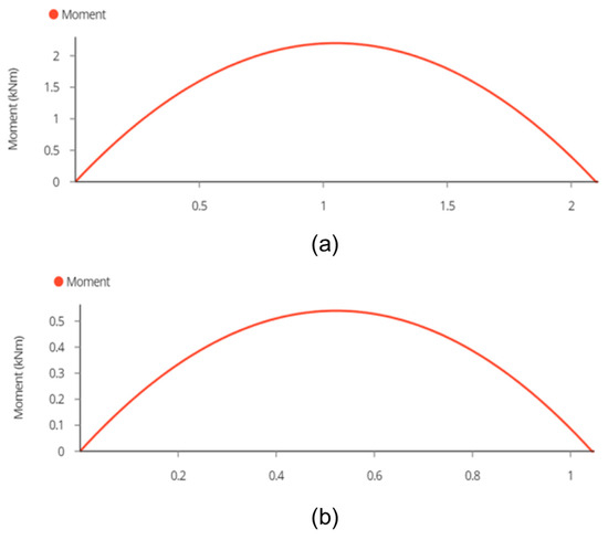 Moreover, the bending moment is determined as 2.20 kN m and 0.54 kN m for the two structures from Equation (A17), as depicted in Figure 8.
