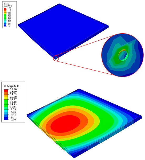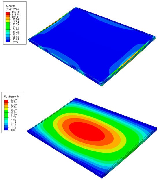 Using Equations (A2)–(A4), the external pressure, the internal pressure, and the total wind load are found out to be −0.98 kPa, −0.68 kPa, and −1.66 kPa, respectively.