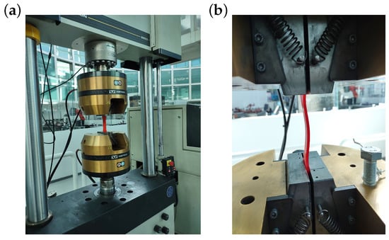 Durability tests were performed on an Instron uniaxial test machine (Figure 3) under the following load conditions at room temperature according to the standard ASTM D7791 [19]: amplitude, 2000 N; frequency, 2 Hz; and R = −1.