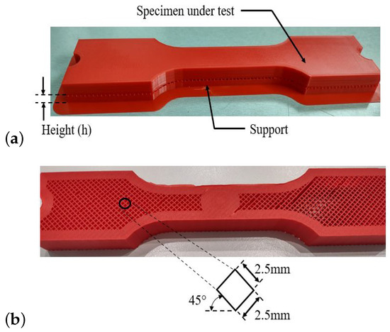 Component printed with support: (a) as printed and (b) support parameters.
